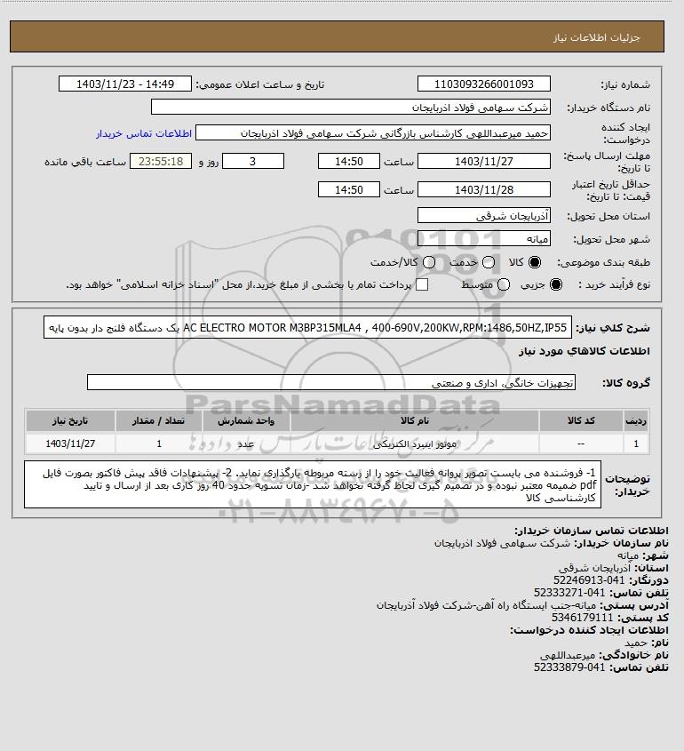 نام دستگاه خریدار:شرکت سهامی فولاد اذربایجان