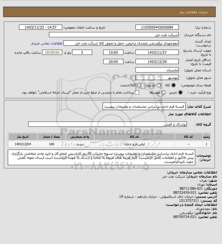 استعلام البسه فرم اداری براساس مشخصات و توضیخات پیوست, استعلام البسه فرم اداری براساس مشخصات و توضیخات پیوست
