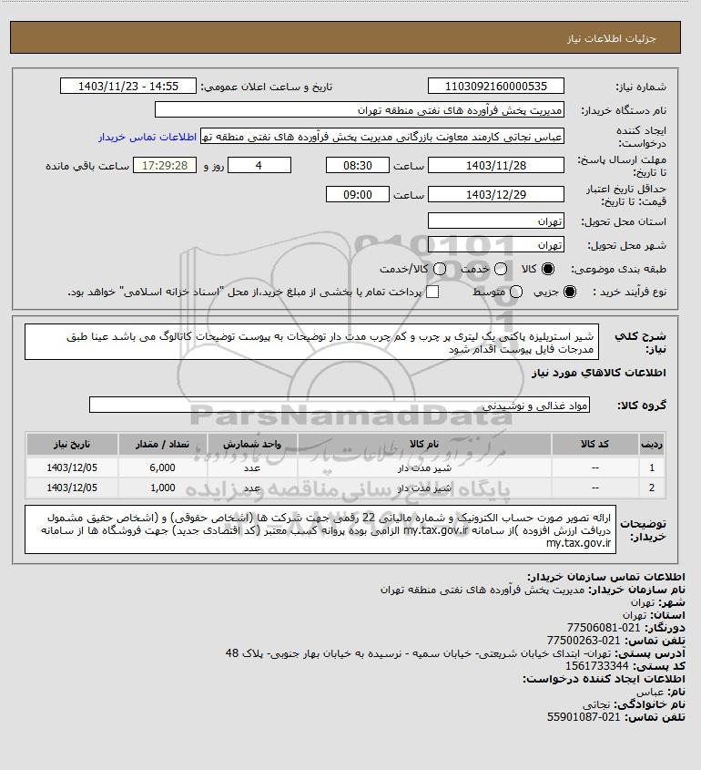 نام دستگاه خریدار:مدیریت پخش فرآورده های نفتی منطقه تهران