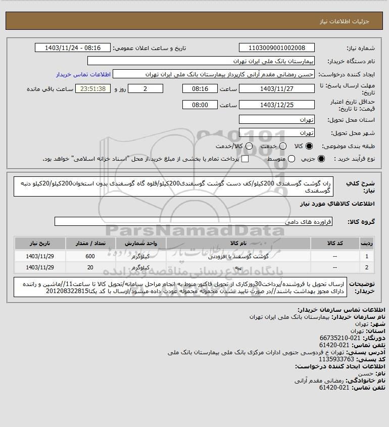 نام دستگاه خریدار:بیمارستان بانک ملی ایران تهران