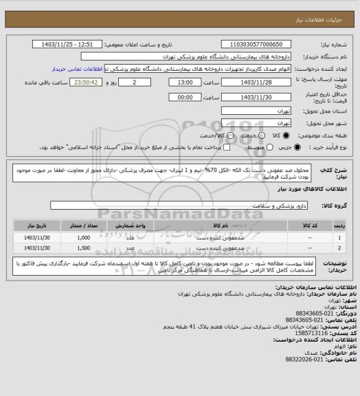 1 -- ضدعفونی کننده دست عدد 1,000 1403/11/30