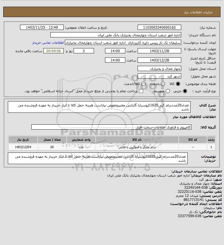 نام دستگاه خریدار:اداره امور شعب استان چهارمحال بختیاری بانک ملی ایران