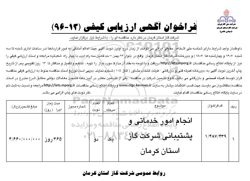 1.487.439 انجام امور خدماتی و پشتیبانی شرکت گاز استان کرمان