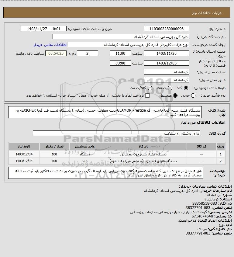 | 1 | -- | دستگاه فشار سنج خون دیجیتالی | دستگاه | 100 | 1403/12/04 |