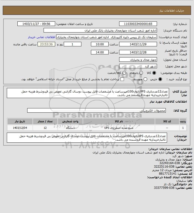 نام سازمان خریدار: اداره امور شعب استان چهارمحال بختیاری بانک ملی ایران