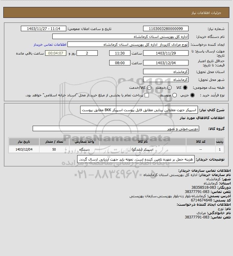 شرح کلی نیاز: اسپیکر جهت معلولین بینایی مطابق فایل پیوست اسپیکر BKK مطابق پیوست