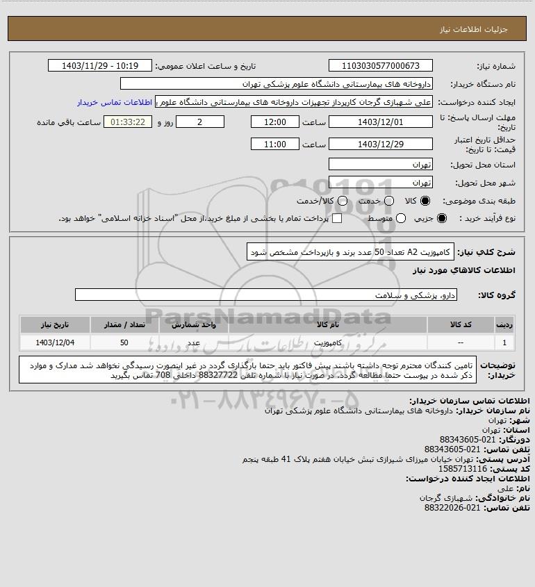 نام دستگاه خریدار:داروخانه های بیمارستانی دانشگاه علوم پزشکی تهران