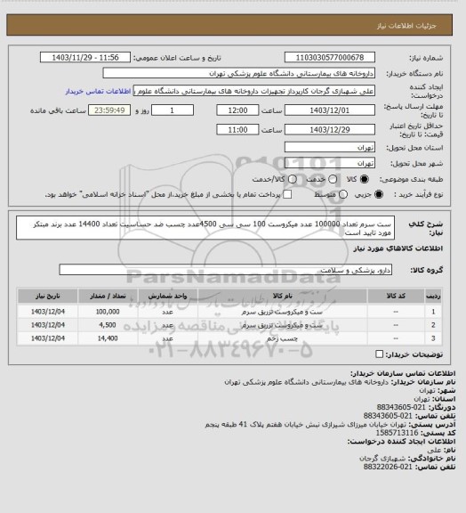 | 1 | -- | ست و میکروست تزریق سرم | عدد | 100,000 | 1403/12/04 |