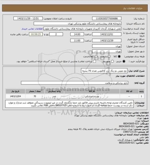 شرح کلی نیاز: وج چوبی دو رنگ برند کاکتوس تعداد 70 بسته