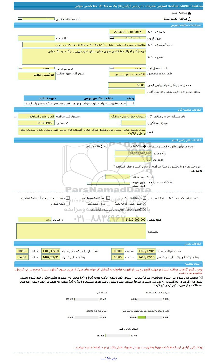 | مبلغ تضمین | 1,510,000,000 | واحد پول | ریال |