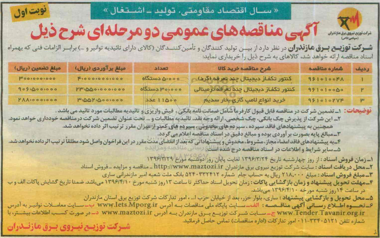 شرکت توزیع برق مازندران در نظر دارد از بین تولیدکنندگان و تامین کنندگان (کالای دارای تاییدیه توانیر و ...) برابر الزامات فنی که بهمراه اسناد مناقصه ارائه خواهد شد کالاهای به شرح ذیل را خریداری نماید :