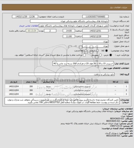 نام دستگاه خریدار:داروخانه های بیمارستانی دانشگاه علوم پزشکی تهران