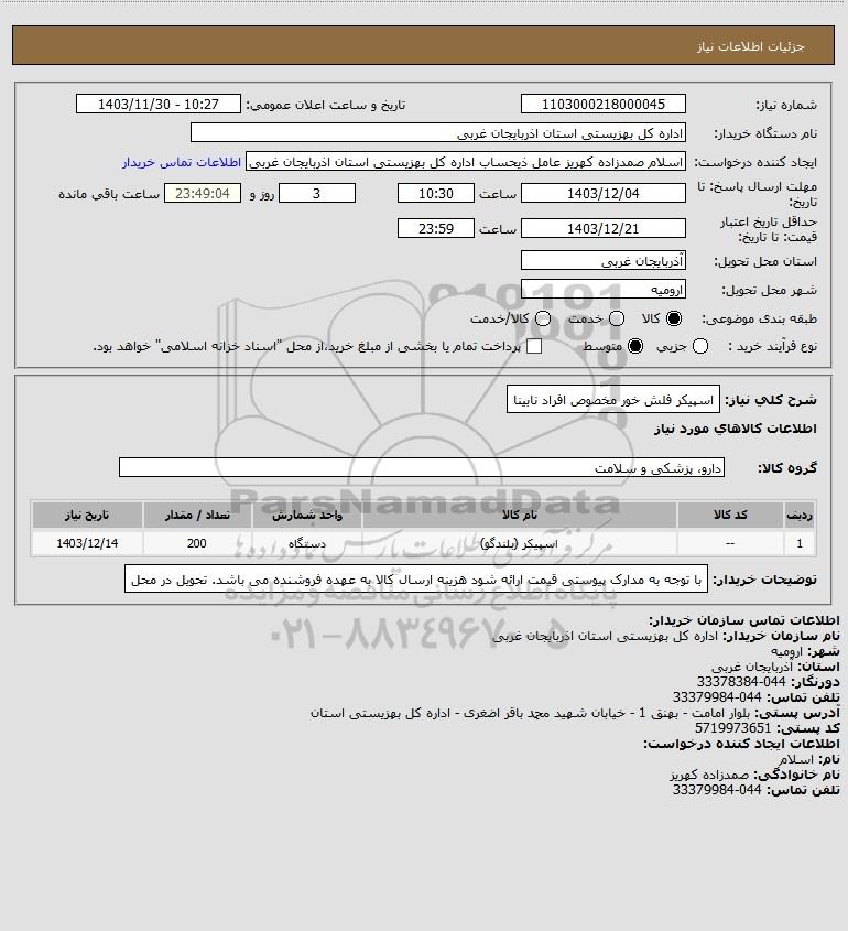 نام دستگاه خریدار:اداره کل بهزیستی استان اذربایجان غربی