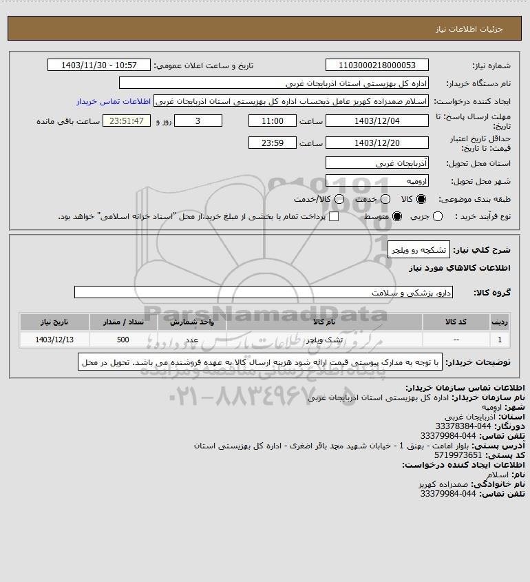 نام دستگاه خریدار:اداره کل بهزیستی استان اذربایجان غربی
