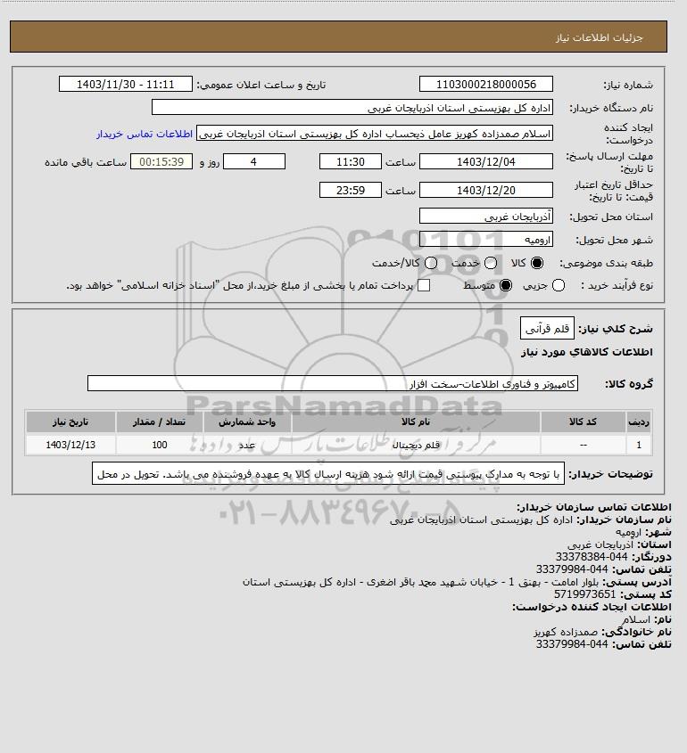 شرح کلی نیاز: قلم قرآنی