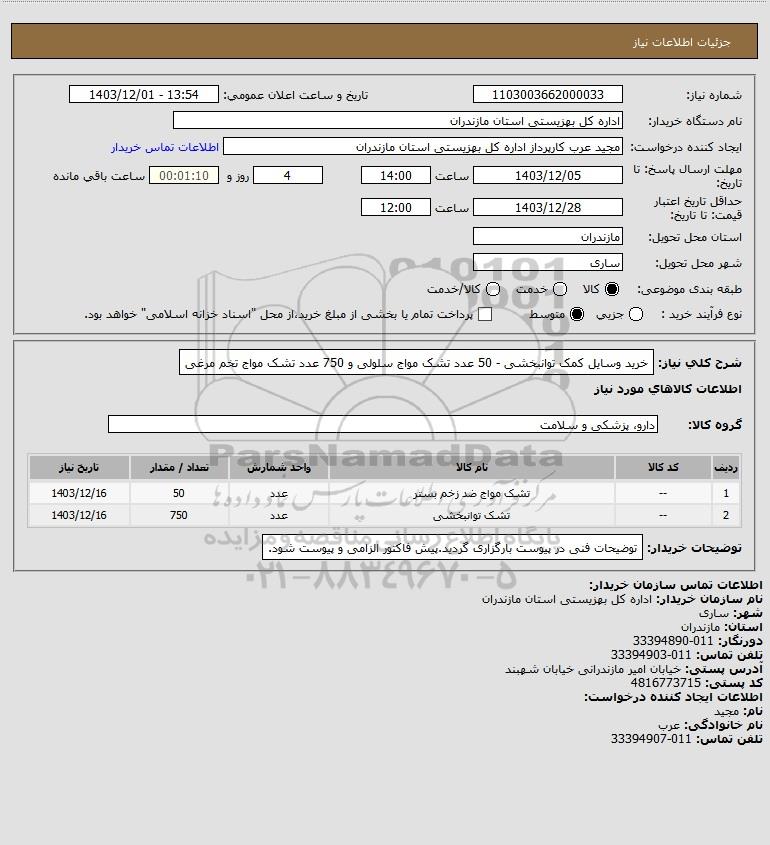 | 2 | -- | تشک توانبخشی | عدد | 750 | 1403/12/16 |