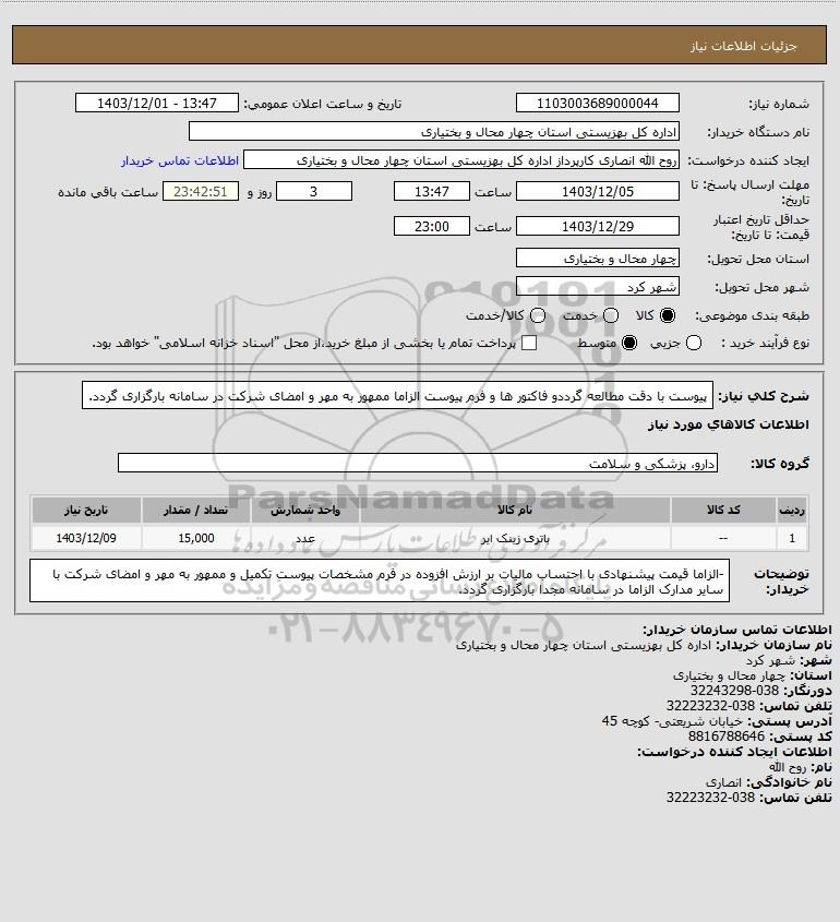 نام دستگاه خریدار:اداره کل بهزیستی استان چهار محال و بختیاری