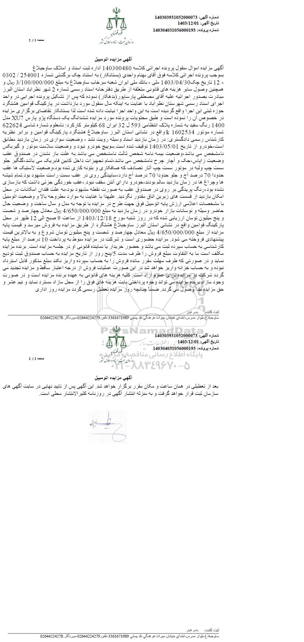 تاریخ مزایده: ساعت 9 الی 12 روز شنبه 1403.12.18