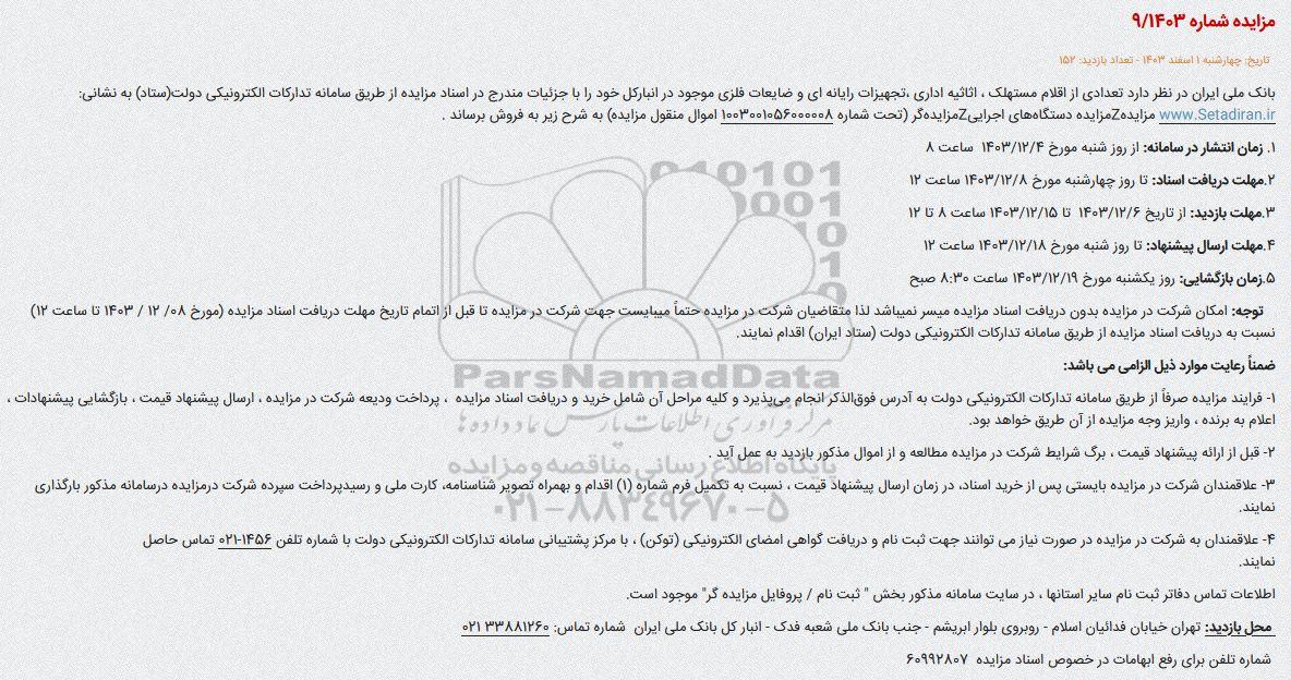 مزایده شماره 9/1403