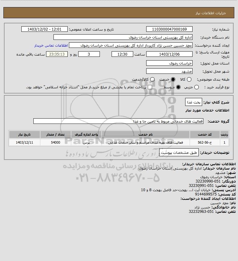 نام دستگاه خریدار:اداره کل بهزیستی استان خراسان رضوی