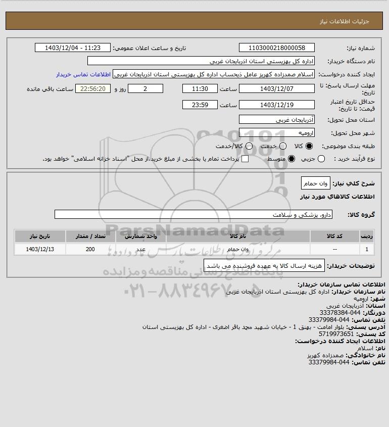 | 1 | -- | وان حمام | عدد | 200 | 1403/12/13 |