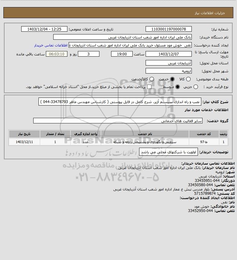نام دستگاه خریدار:بانک ملی ایران اداره امور شعب استان اذربایجان غربی
