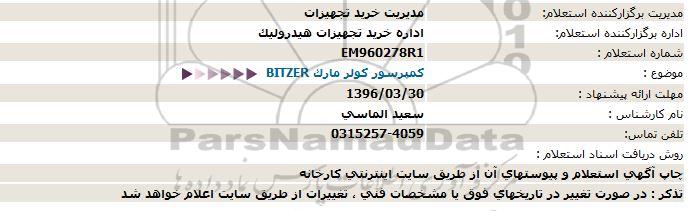 اداره برگزارکننده استعلام:اداره خرید تجهیزات هیدرولیك