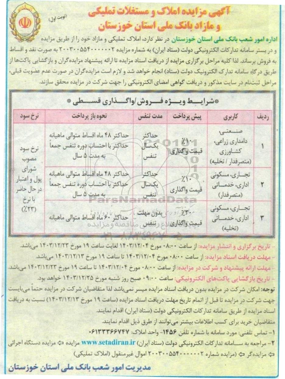 و مازاد بانک ملی استان خوزستان نوبت اول