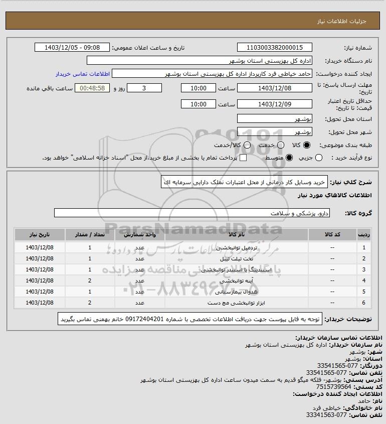 | 5 | -- | هدوال بیمارستانی | عدد | 1 | 1403/12/08 |