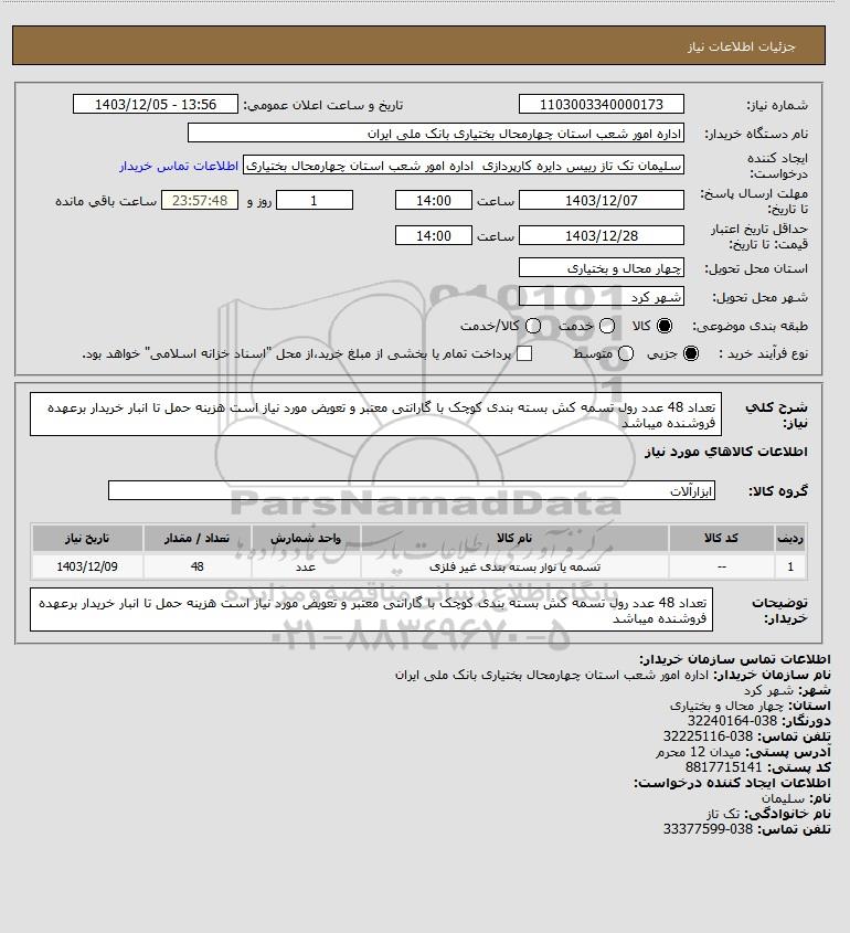 نام دستگاه خریدار:اداره امور شعب استان چهارمحال بختیاری بانک ملی ایران