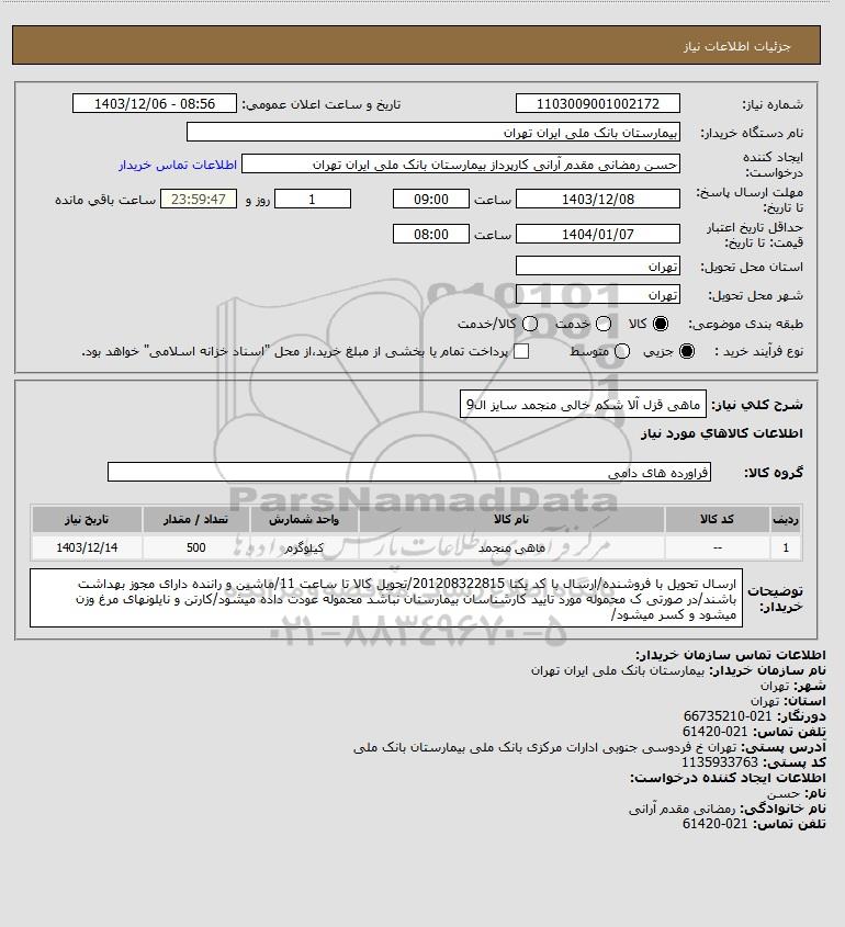 1 -- ماهی منجمد کیلوگرم 500 1403/12/14