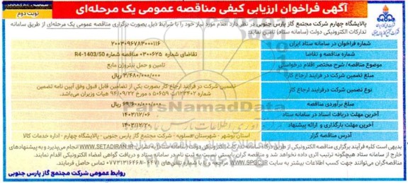 آگهی فراخوان ارزیابی کیفی مناقصه عمومی یک مرحله ای