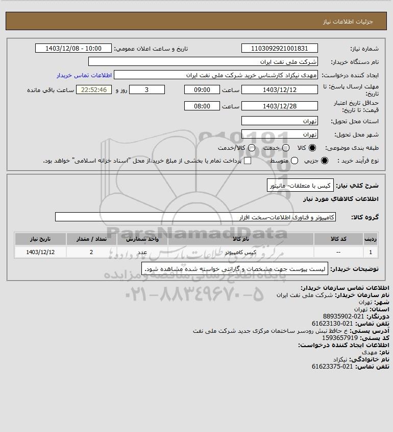 شرح کلی نیاز: کیس با متعلقات- مانیتور