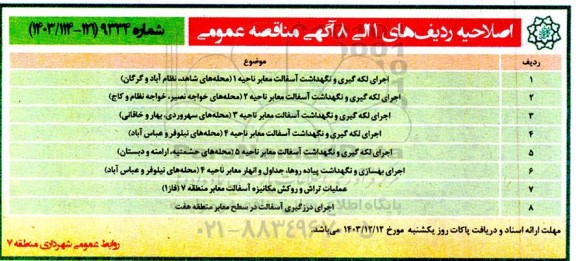 اصلاحیه ردیف های 1 الی 8 آگهی مناقصه عمومی؟