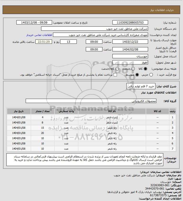 شرح کلی نیاز: خرید 7 قلم لوازم برقی