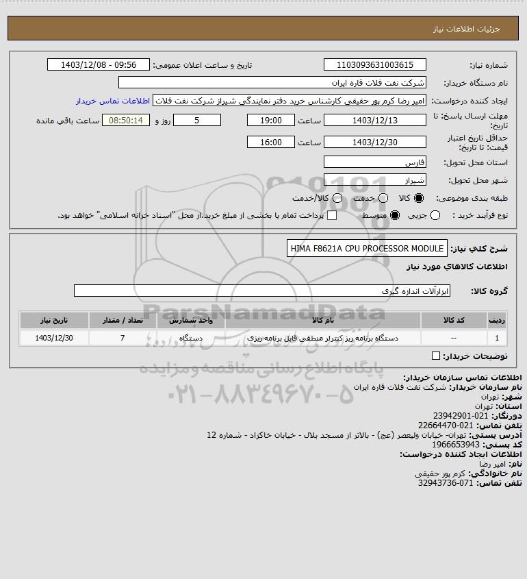 نام دستگاه خریدار:شرکت نفت فلات قاره ایران