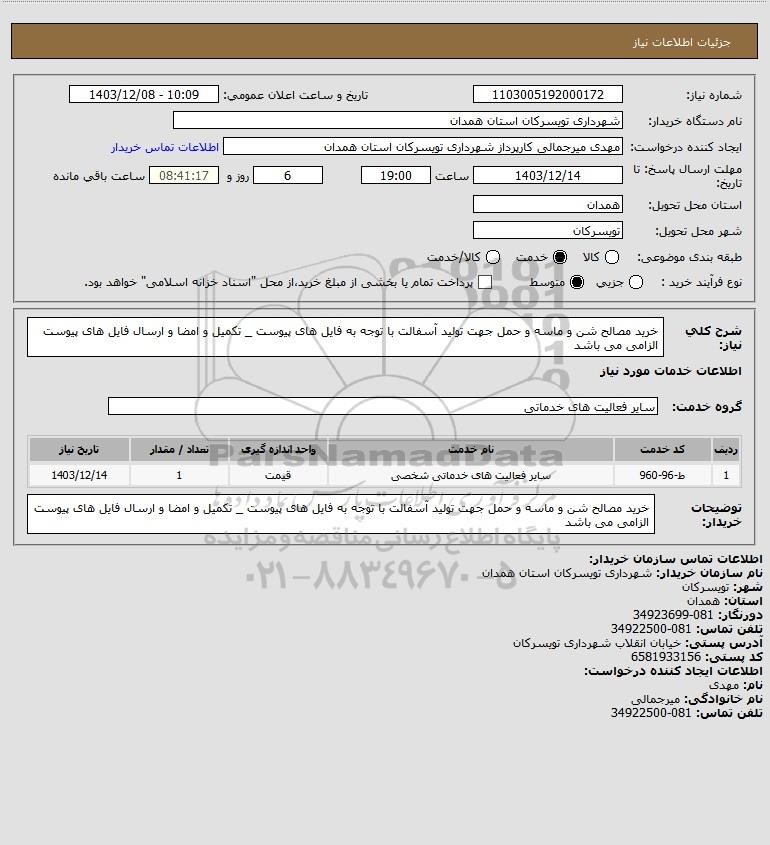 نام دستگاه خریدار:شهرداری تویسرکان استان همدان