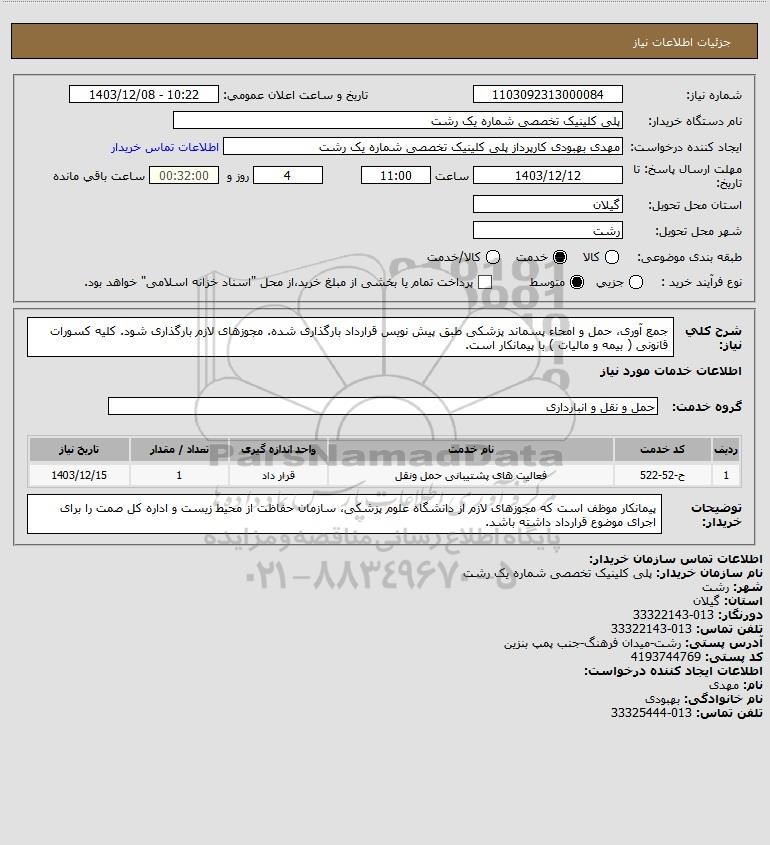 نام دستگاه خریدار:پلی کلینیک تخصصی شماره یک رشت