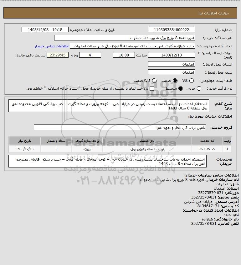نام دستگاه خریدار:امورمنطقه 8 توزیع برق شهرستان اصفهان