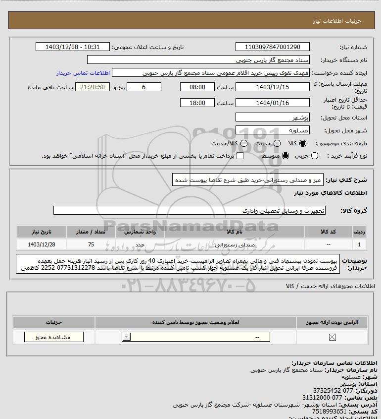 نام دستگاه خریدار:ستاد مجتمع گاز پارس جنوبی