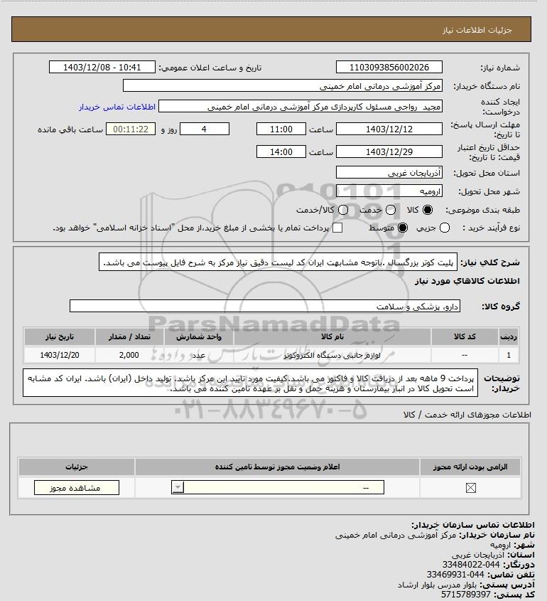 شماره نیاز: 1103093856002026