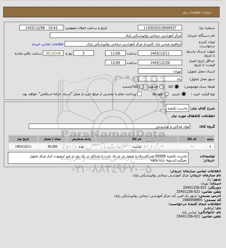 نام سازمان خریدار: مرکز آموزشی درمانی روانپزشکی رازی
