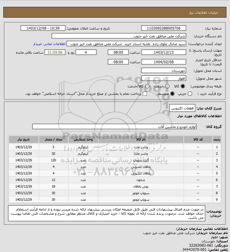نام دستگاه خریدار:شرکت ملی مناطق نفت خیز جنوب