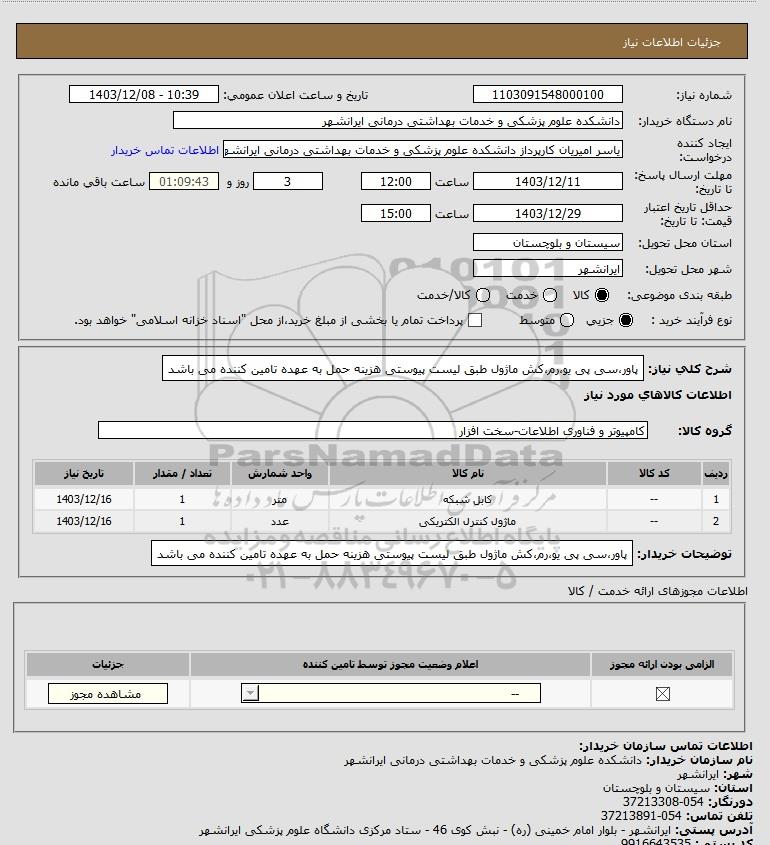 استعلام پاورسی پی یورمکش ماژول طبق لیست پیوستی هزینه حمل به عهده تامین کننده می باشد, استعلام پاور،سی پی یو،رم،کش ماژول طبق لیست پیوستی هزینه حمل به عهده تامین کننده می باشد