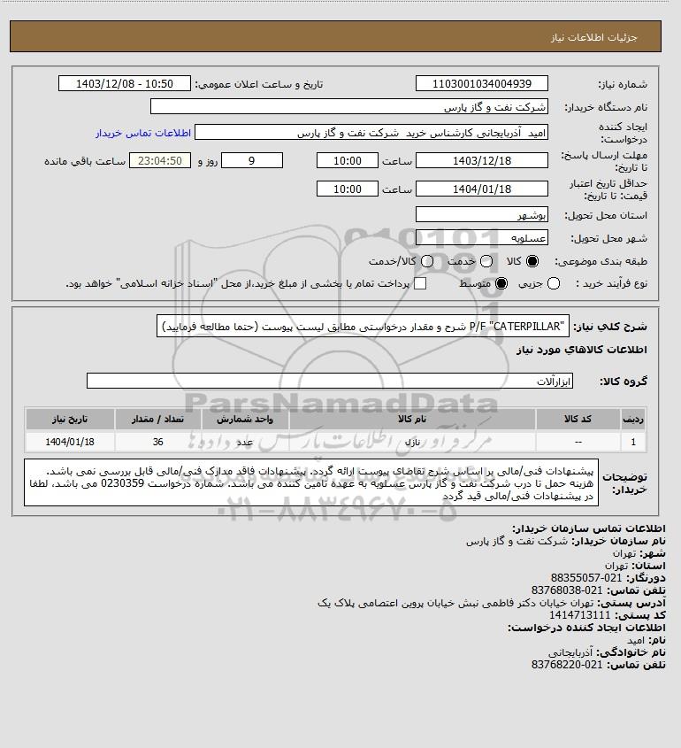 شرح کلی نیاز: "P/F "CATERPILLAR