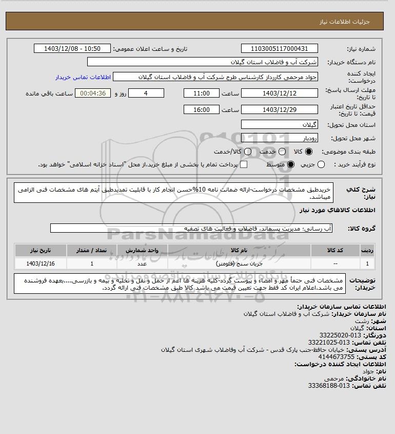 نام دستگاه خریدار:شرکت آب و فاضلاب استان گیلان