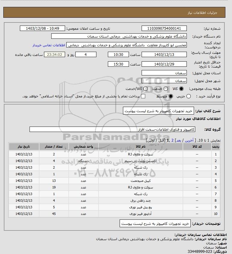 شرح کلی نیاز: خرید تجهیزات کامپیوتر به شرح لیست پیوست