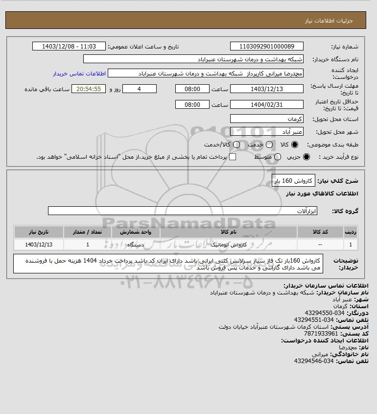 شرح کلی نیاز: کارواش 160 بار
