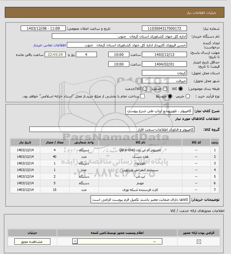 شرح کلی نیاز: کامپیوتر ، تلویزیون و لپتاپ طی شرح پیوست