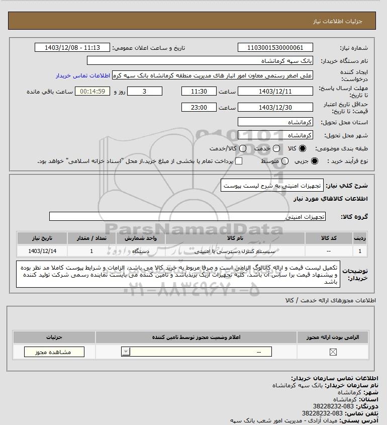 استعلام تجهیزات امنیتی به شرح لیست پیوست, استعلام تجهیزات امنیتی به شرح لیست پیوست